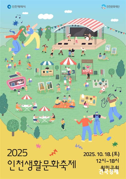 인천광역시(시장 유정복)와 인천문화재단(대표이사 직무대행 허회숙)이 오는 10월 18일(토) 오후 12시부터 6시까지, 인천 중구 월미공원 일대에서 ‘2025 인천생활문화축제’를 연다. 이번 축제는 인천에서 활동하는 100개의 생활문화동아리가 참여하여 시민과 함께하는 생활문화의 장을 마련한다. 시민 누구나 쉽게 참여하고 즐길 수 있는 축제로, 공연·전시·체험이 어우러진 다채로운 프로그램을 진행한다.