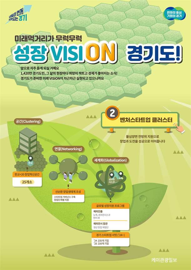 또한 스타트업 세계화를 위해 2024년부터 매년 ‘경기 스타트업 서밋(G-SUMMIT)’을 개최해 투자 유치 기회를 제공하고, 스타트업 해외 진출 프로그램 운영, 청년창업체험단 국제 전시‧박람회 참가 지원 등 실질적인 해외 경험 기회를 제공해 스타트업의 국제 경쟁력을 강화했다.