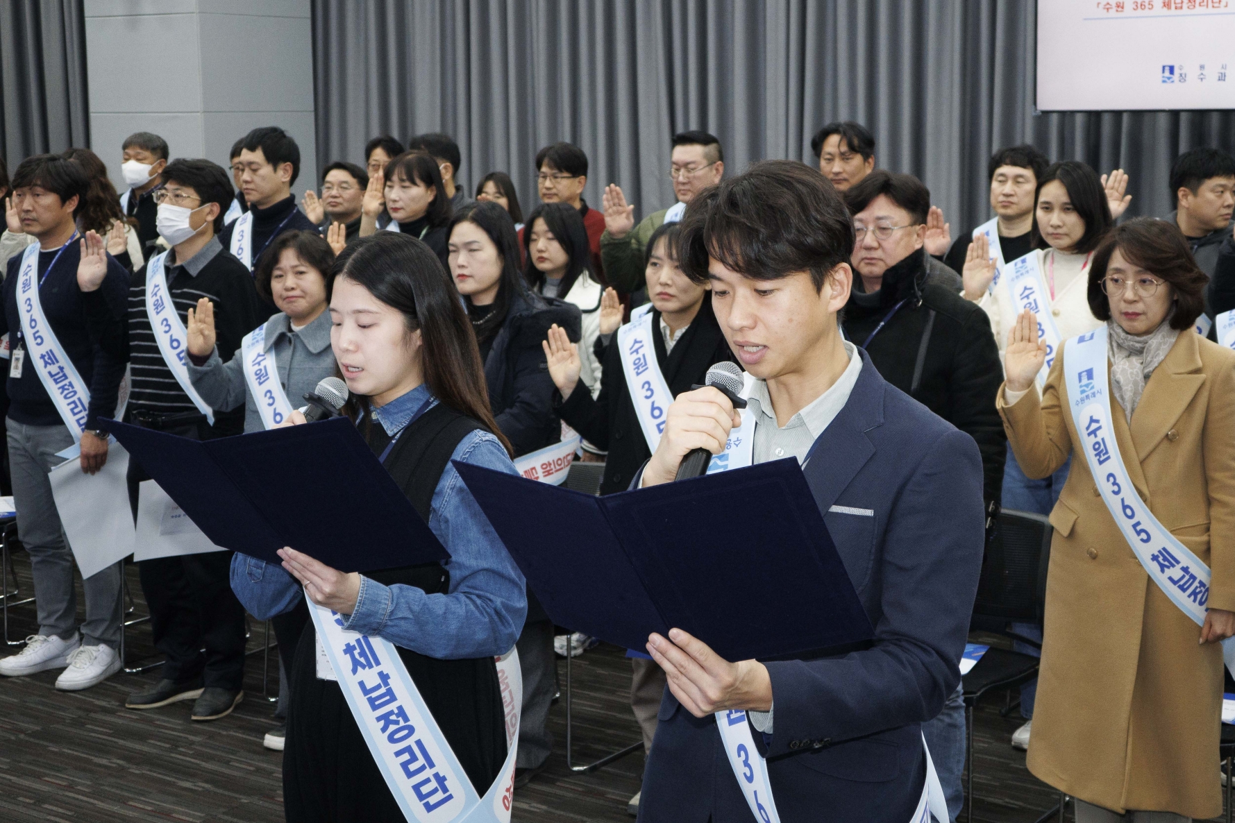 이날 발대식에서 수원 365 체납정리단원 대표 2명은 ‘2026 체납액 일소 원년의 해 달성을 위한 우리의 결의’를 낭독하고, “우리는 수원시 건전재정을 책임진다는 각오로 지방세 및 세외수입 체납액을 끝까지 추적해 징수한다”고 결의했다.